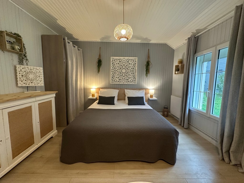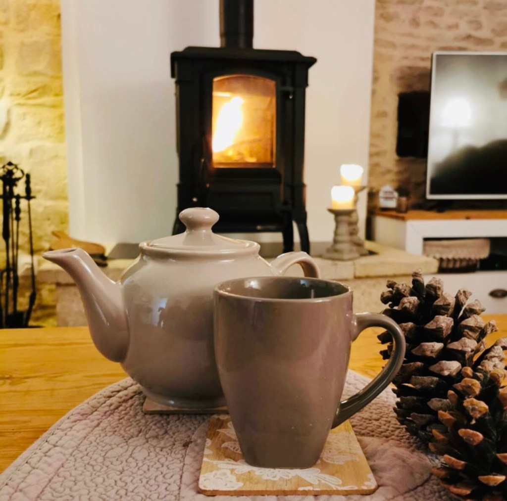 L’endroit offre une atmosphère cocooning et chaleureuse, accentuée par le poêle à bois, le bois étant inclus dans le tarif.